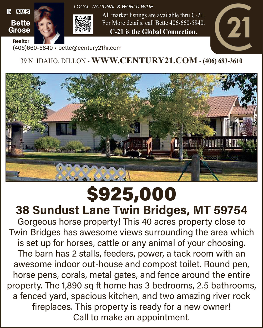 Ads for Bette Grose - Century 21 in Dillon, MT