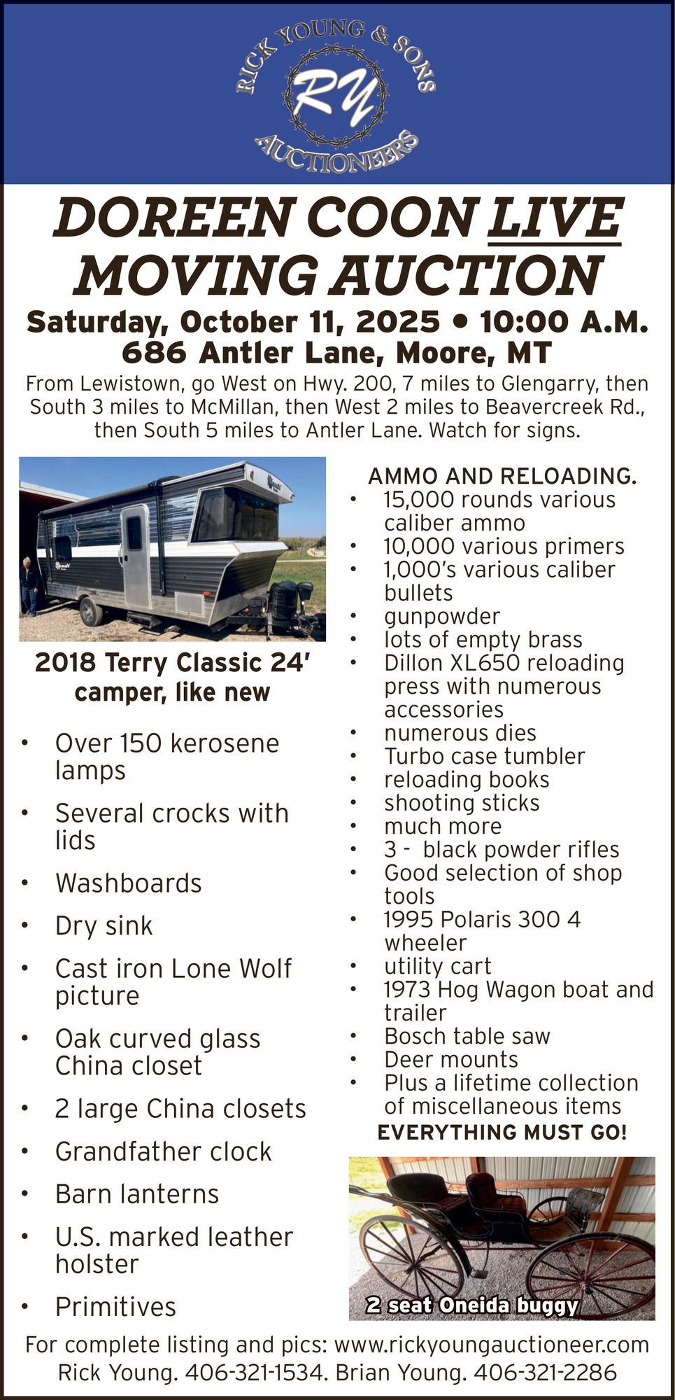 Oct 04, 2025. Rick Young & Sons Auctioneers Auction Ads from Lewistown News-Argus
