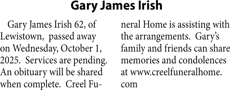Oct 04, 2025. Obituaries Obituaries Ads from Lewistown News-Argus