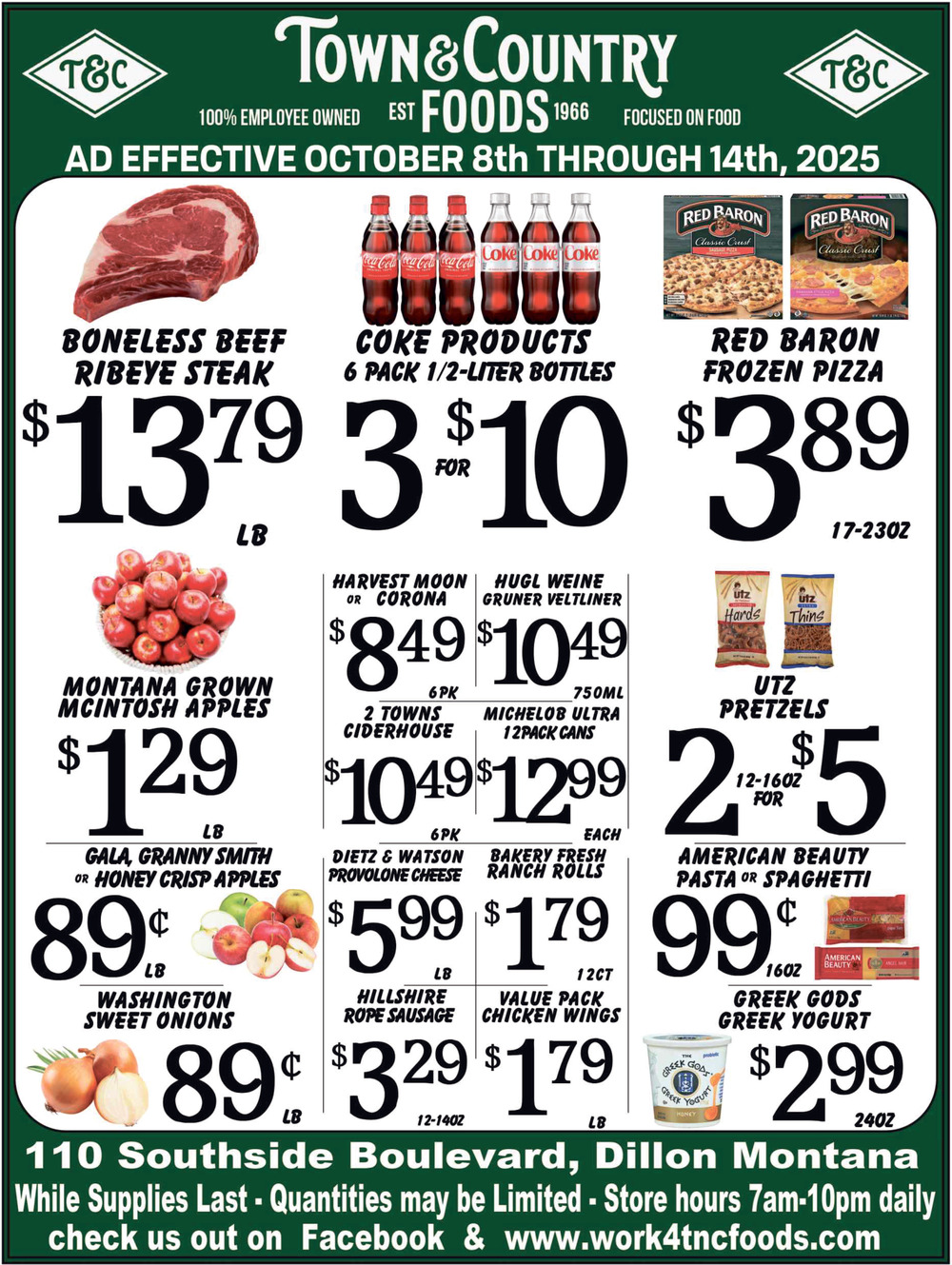 Oct 08, 2025. Town & Country Foods - Dillon Food Ads from The Dillon Tribune