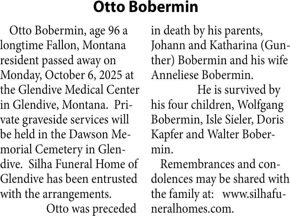 • Obituary in Glendive, MT