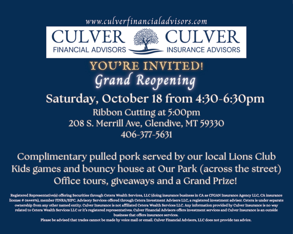 Oct 18, 2025. Culver Insurance Finance & Insurance Ads from The Glendive Ranger-Review
