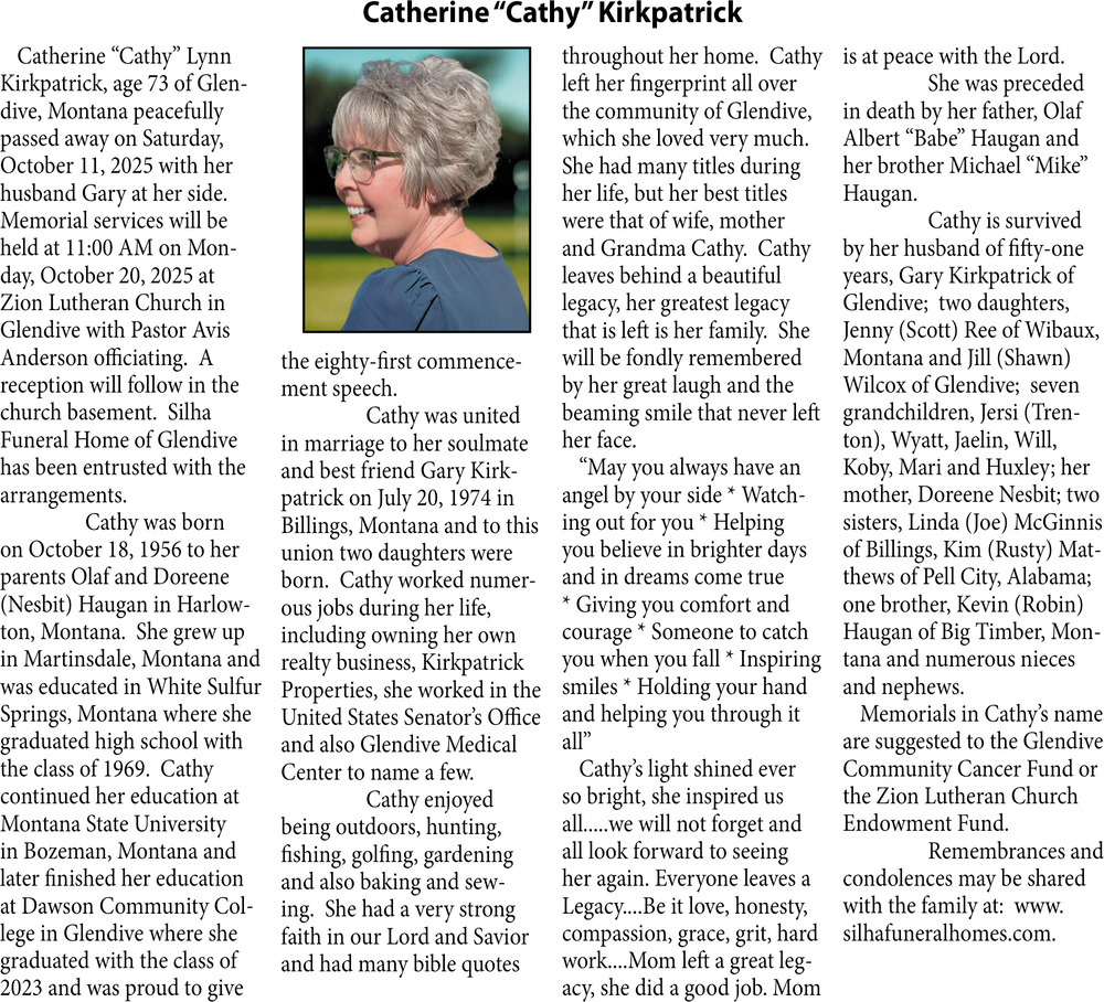 Oct 18, 2025. Obituaries Obituaries Ads from The Glendive Ranger-Review