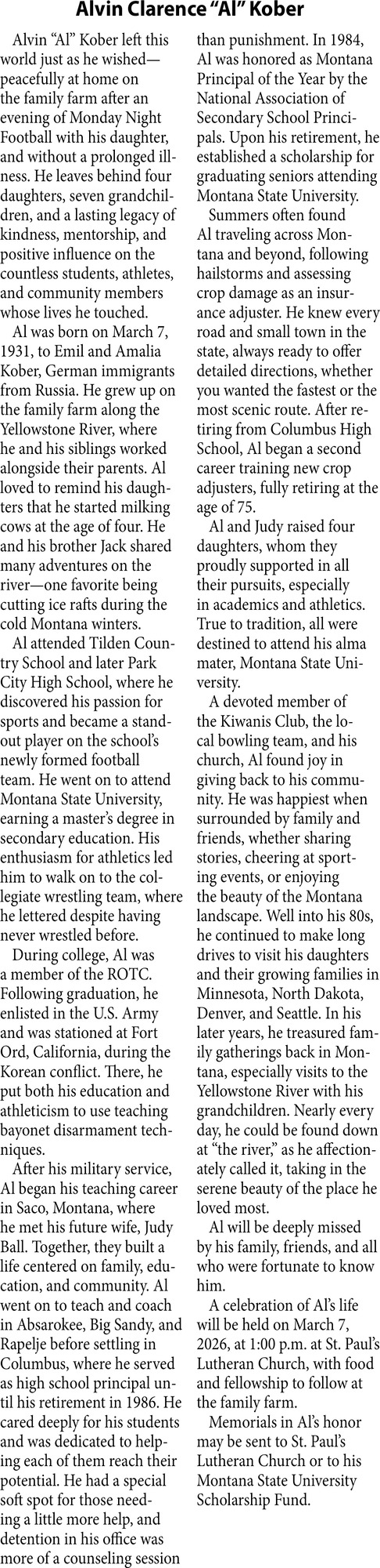 Oct 30, 2025. The Family of Alvin Clarence Al Kober Obituaries Ads from The Stillwater County News