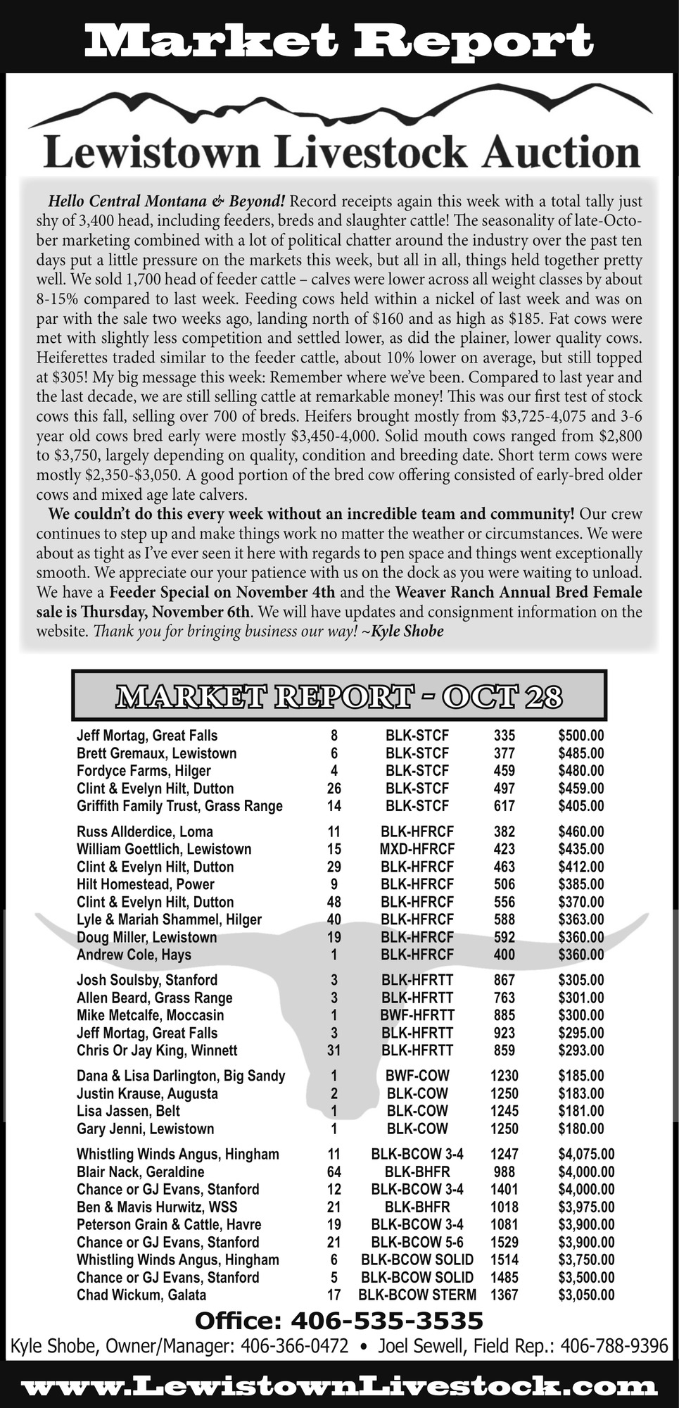 Nov 01, 2025. Lewistown Livestock Auction Auction Ads from Lewistown News-Argus