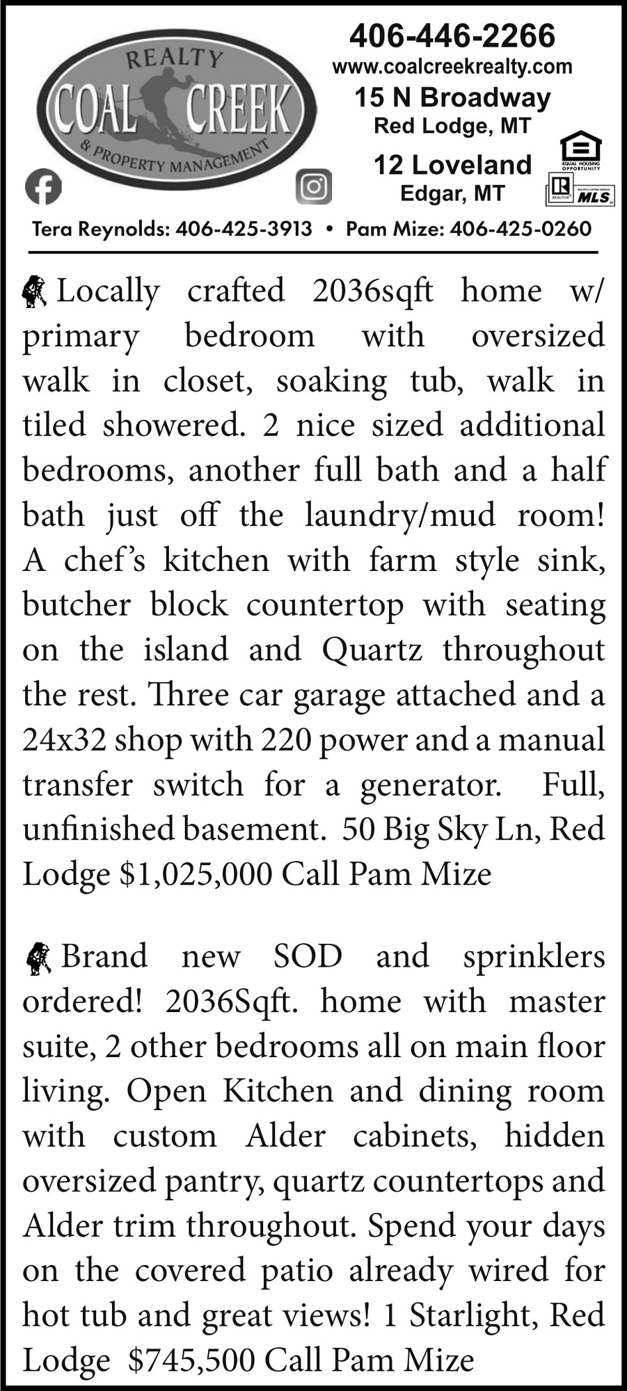 Nov 06, 2025. Coal Creek Realty & Property Management Real Estate Ads from The Carbon County News
