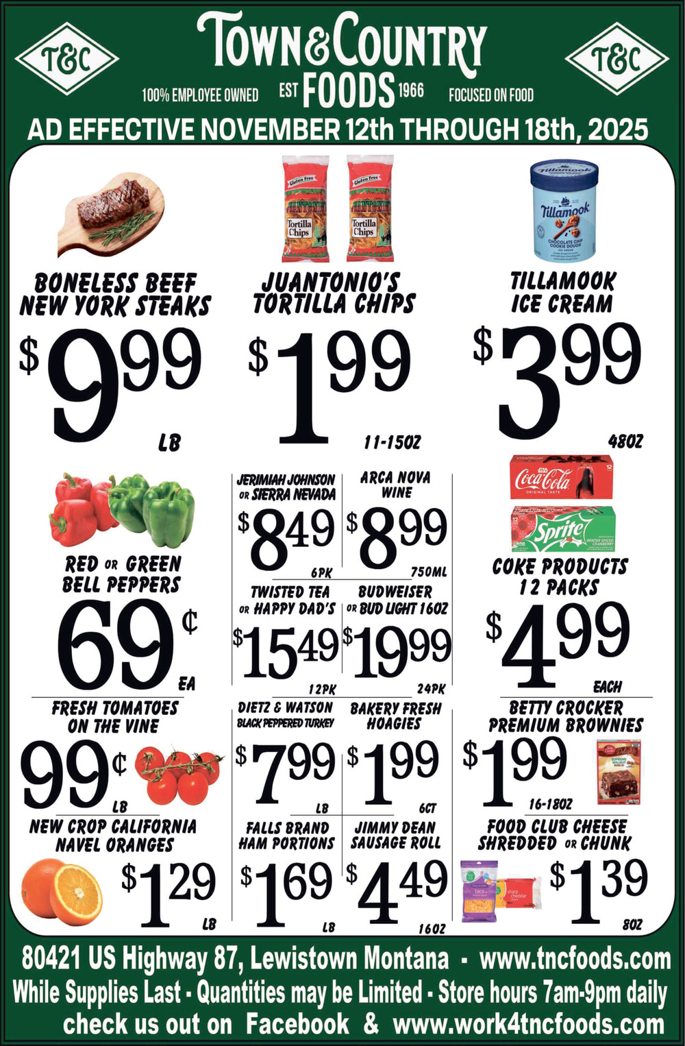 Nov 12, 2025. Town & Country Foods - Lewiston Grocery Store / Market Ads from Lewistown News-Argus