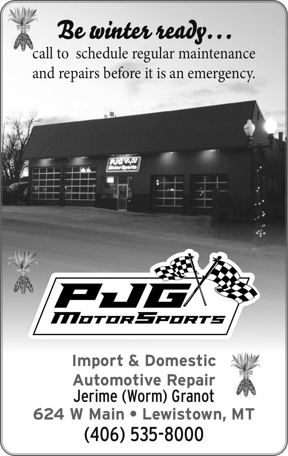 Nov 12, 2025. PJG Motorsports Auto Services Ads from Lewistown News-Argus