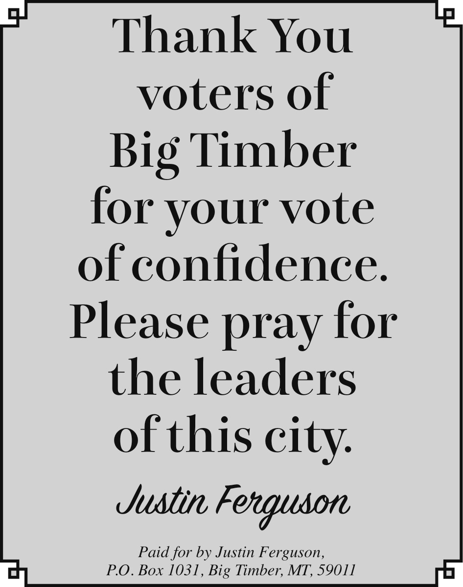 Nov 13, 2025. Justin Ferguson Misc Ads from The Big Timber Pioneer