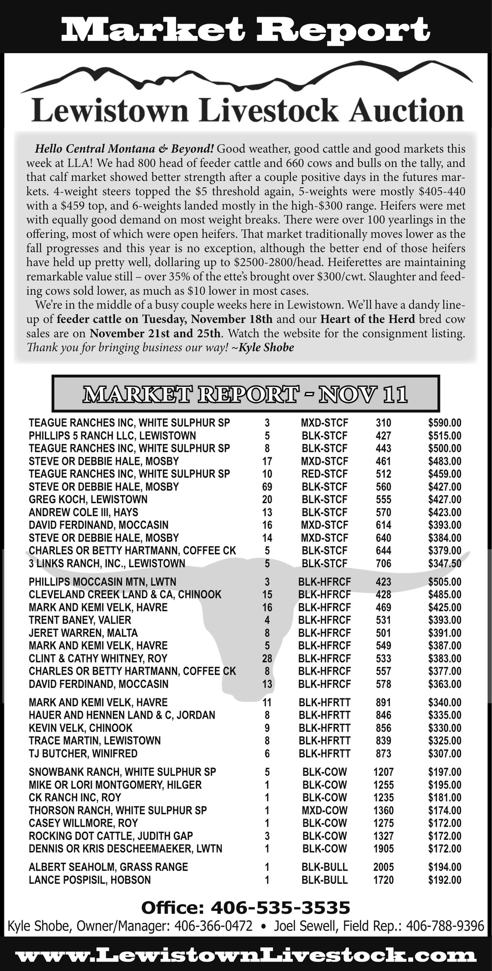 Nov 15, 2025. Lewistown Livestock Auction Auction Ads from Lewistown News-Argus