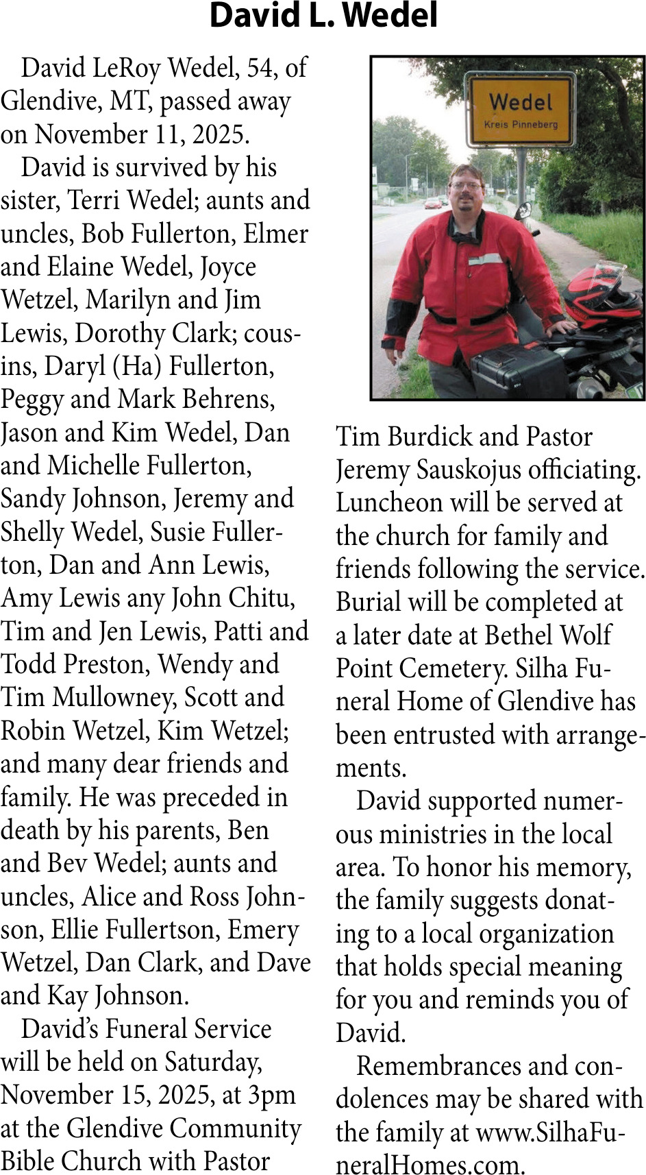 Nov 15, 2025. Obituaries Obituaries Ads from The Glendive Ranger-Review