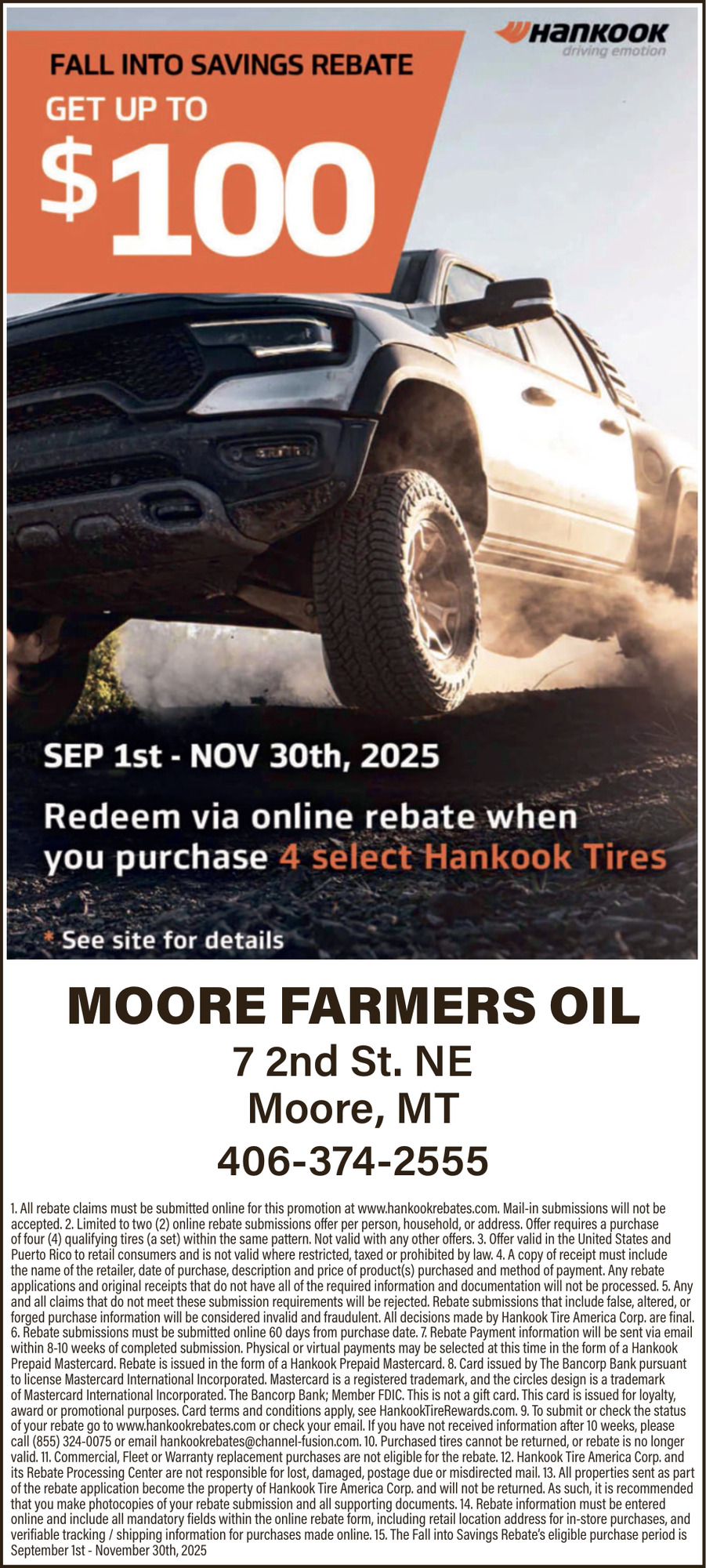 Nov 15, 2025. Moore Farmers Oil Co Oil & Gas Ads from Lewistown News-Argus