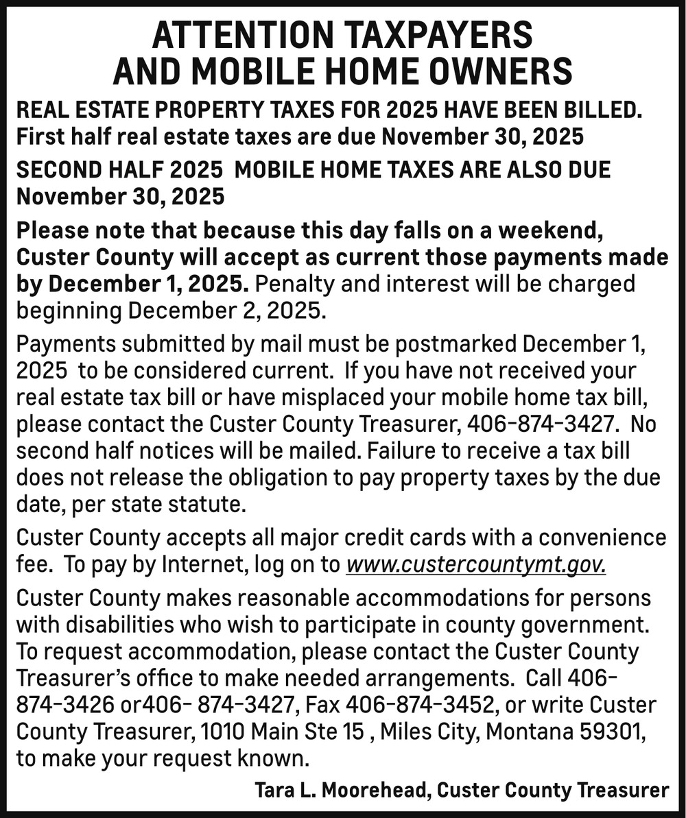 Nov 19, 2025. Custer County Public Notice Ads from The Miles City Star
