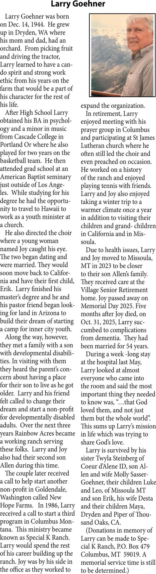 Nov 20, 2025. Obituaries Obituaries Ads from The Stillwater County News