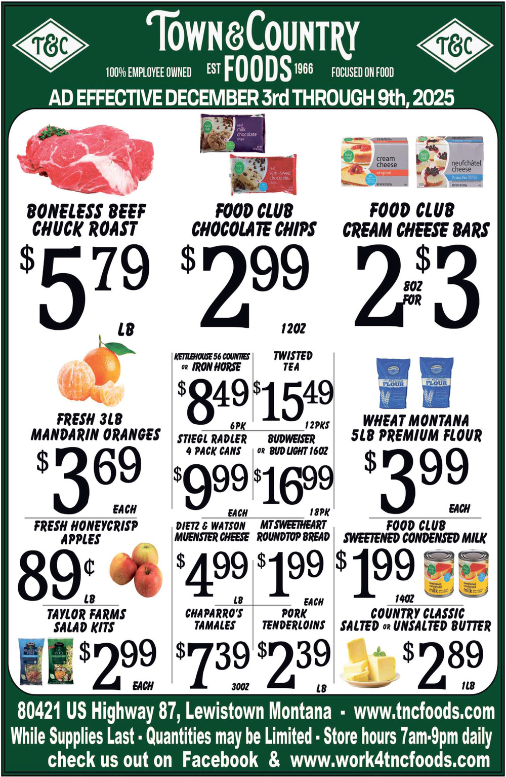Dec 03, 2025. Town & Country Foods - Lewiston Grocery Store / Market Ads from Lewistown News-Argus