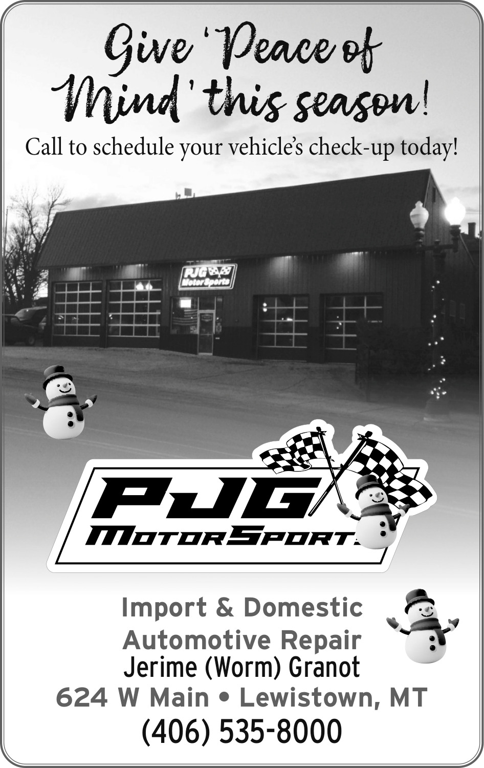 Dec 03, 2025. PJG Motorsports Auto Services Ads from Lewistown News-Argus