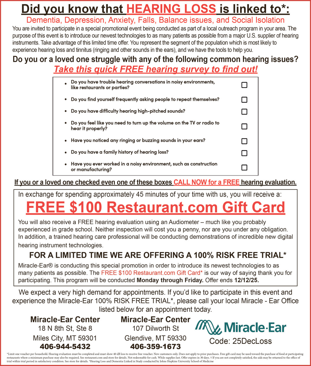 406-412-0689107 Dilworth StGlendive, MT 59330(Miracle-Ear Glendive)