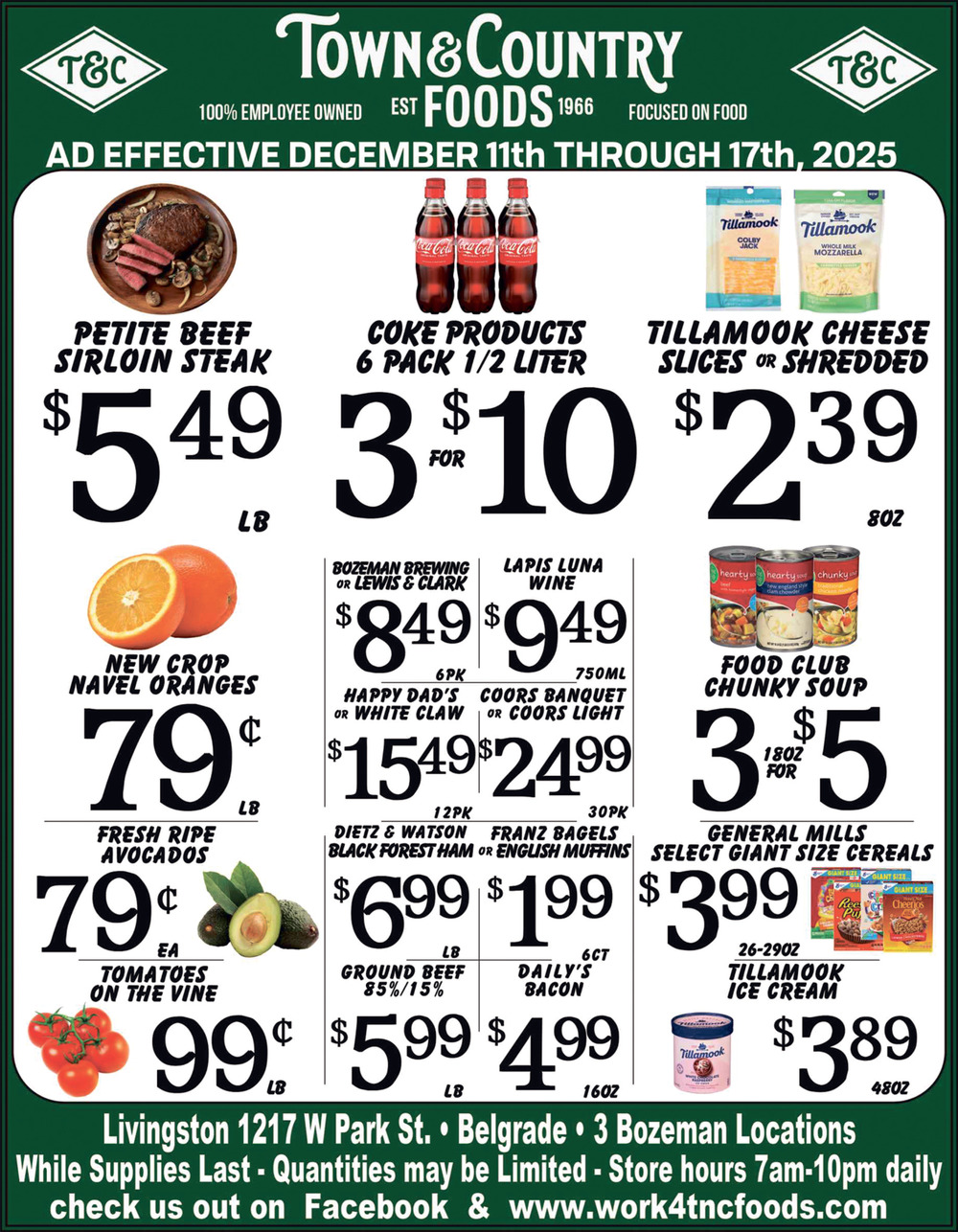 Dec 13, 2025. Town & Country Foods - Bozeman Grocery Store / Market Ads from Livingston Enterprise