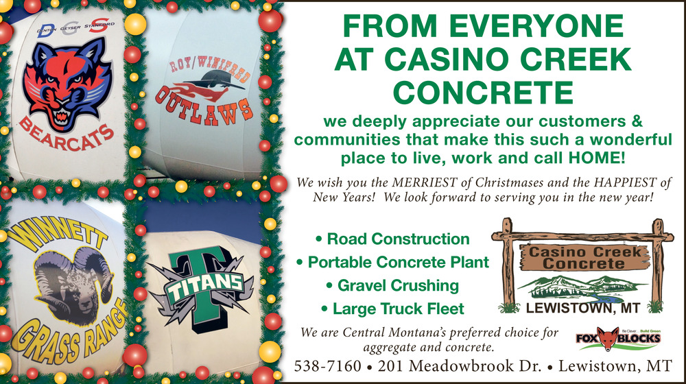 Dec 20, 2025. Casino Creek Concrete Construction Ads from Lewistown News-Argus