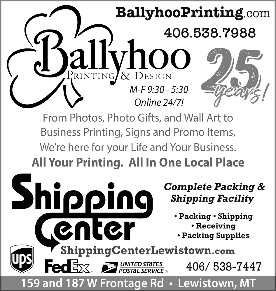 Ads for Ballyhoo Printing & Design in Lewistown, MT