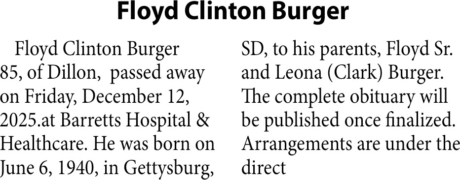 Dec 24, 2025. Obituaries Obituaries Ads from The Dillon Tribune