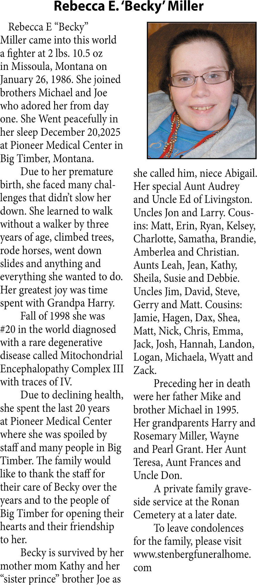 • Obituary in Glendive, MT