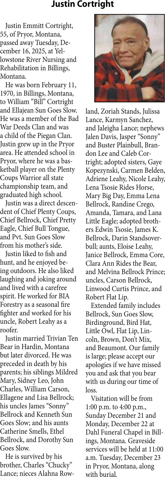 Dec 31, 2025. Obituaries Obituaries Ads from The Bighorn County News