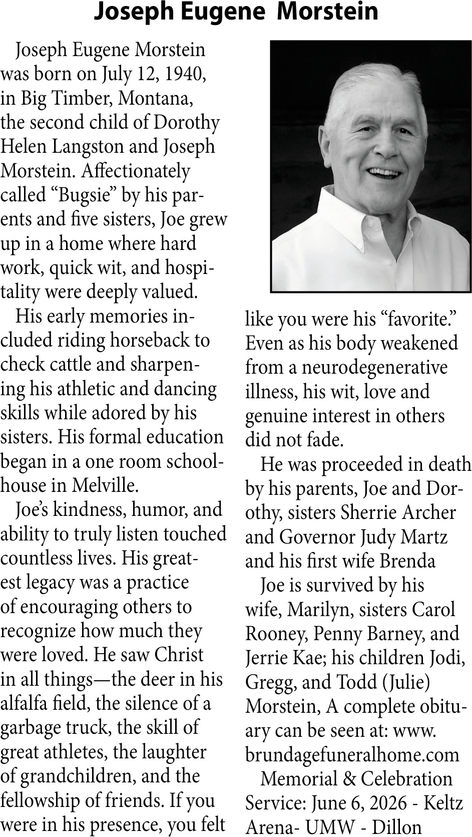 • Obituary in Glendive, MT