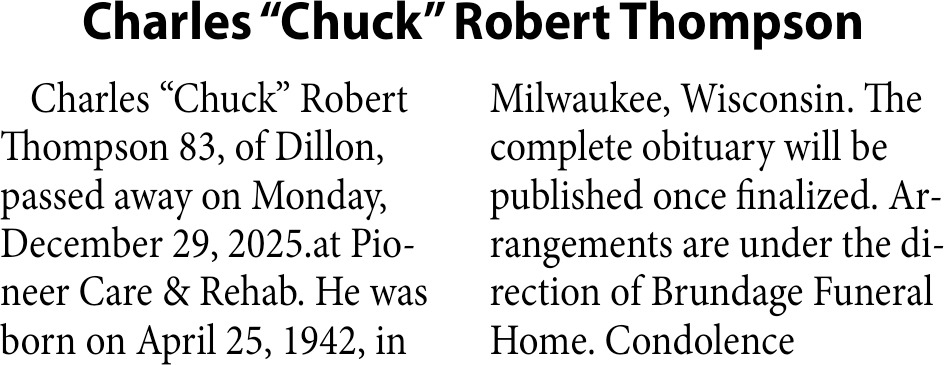 Jan 07, 2026. Obituaries Obituaries Ads from The Dillon Tribune