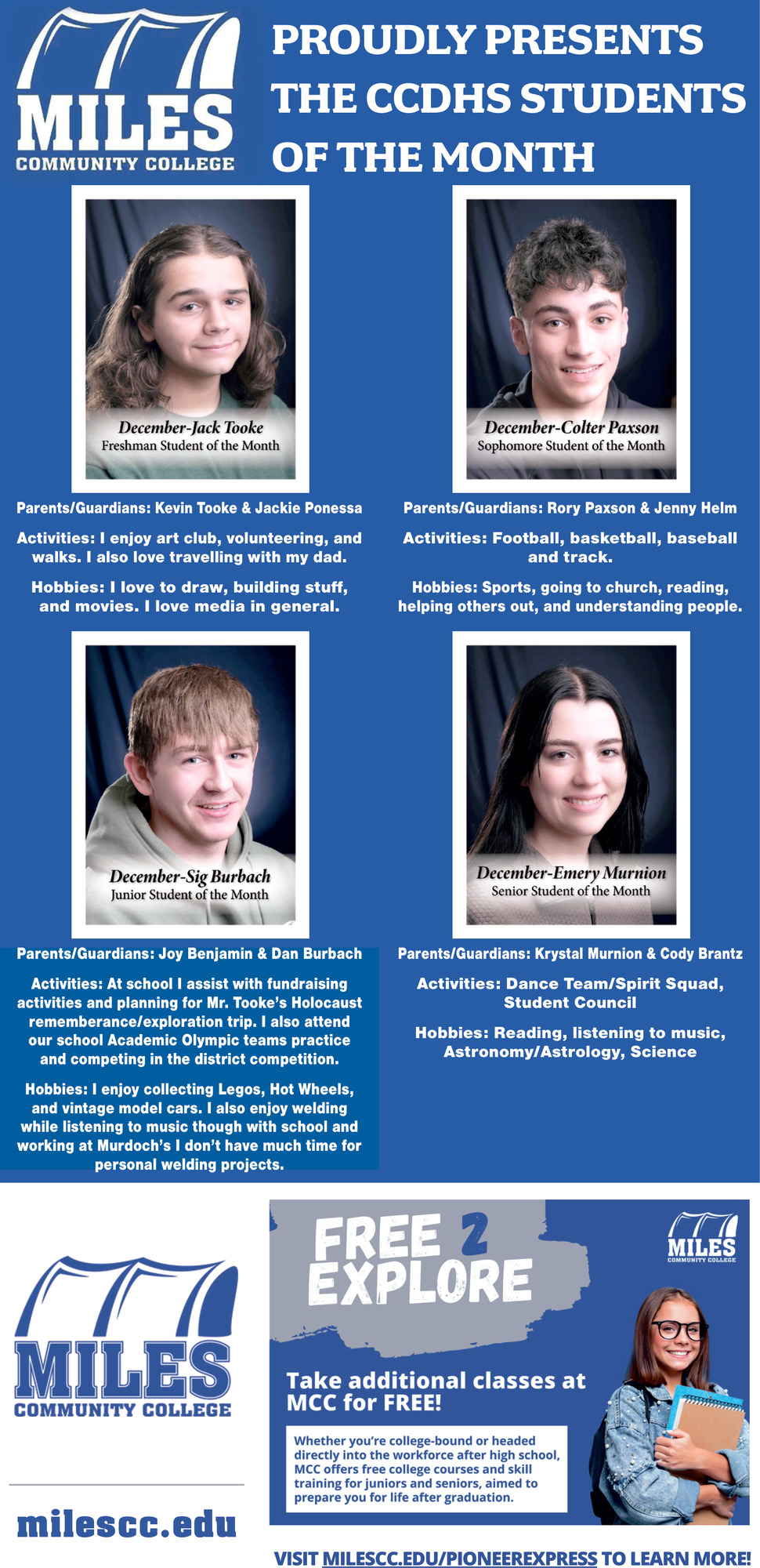 Jan 17, 2026. Miles Community College Education Ads from The Miles City Star