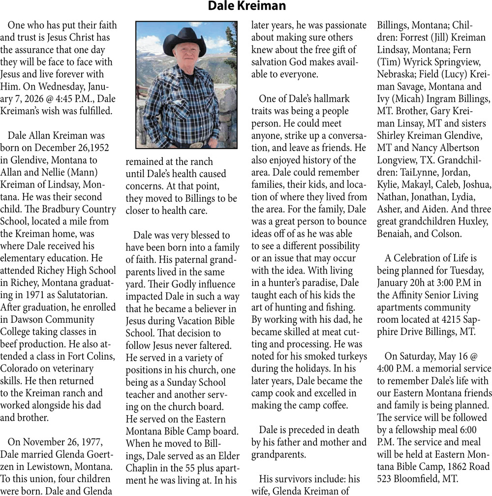 Jan 17, 2026. Obituaries Obituaries Ads from The Glendive Ranger-Review