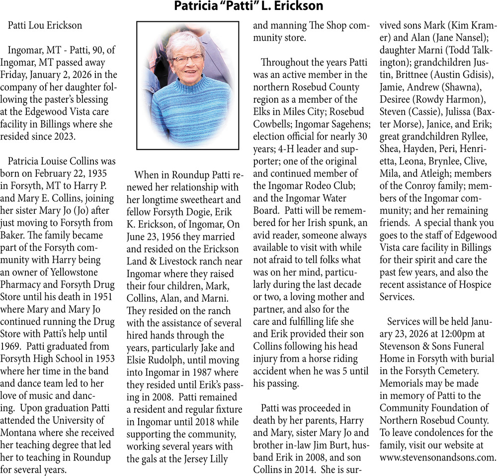 • Obituary in Glendive, MT
