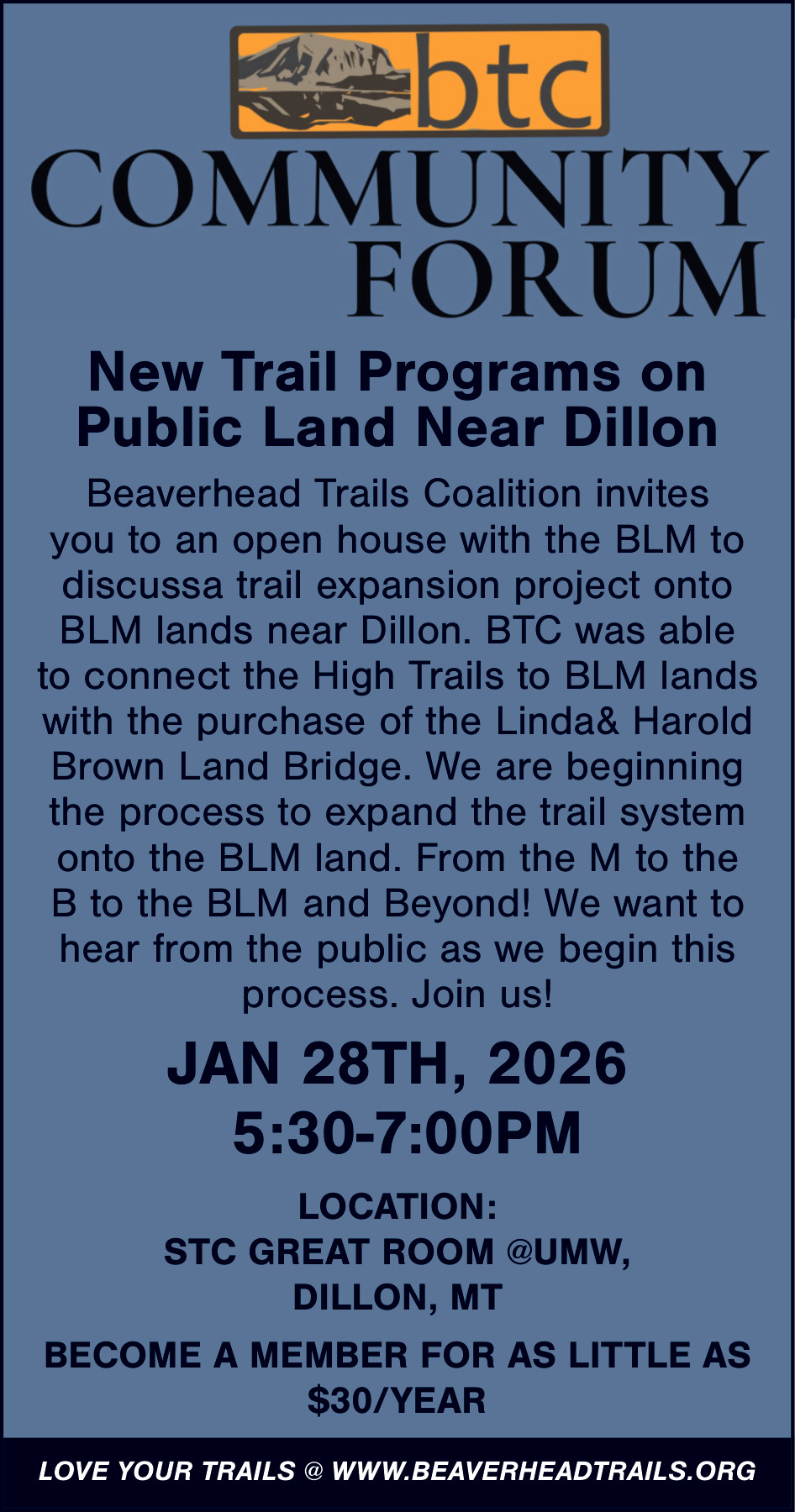 Jan 28, 2026. Beaverhead Trails Coalition Organization Ads from The Dillon Tribune