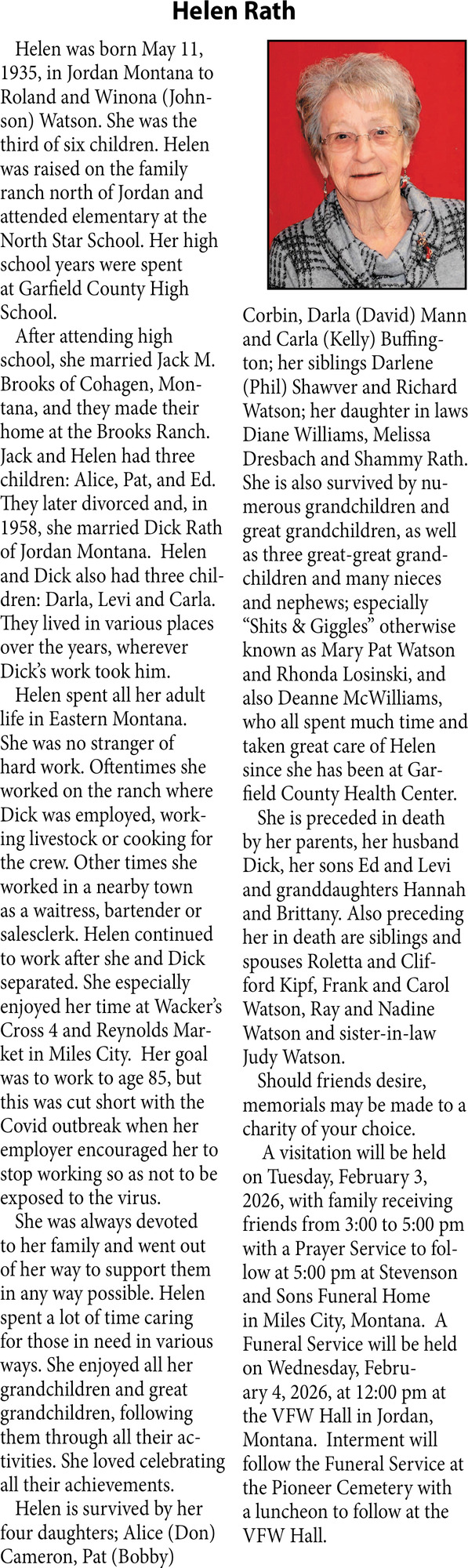 Jan 28, 2026. Obituaries Obituaries Ads from The Miles City Star