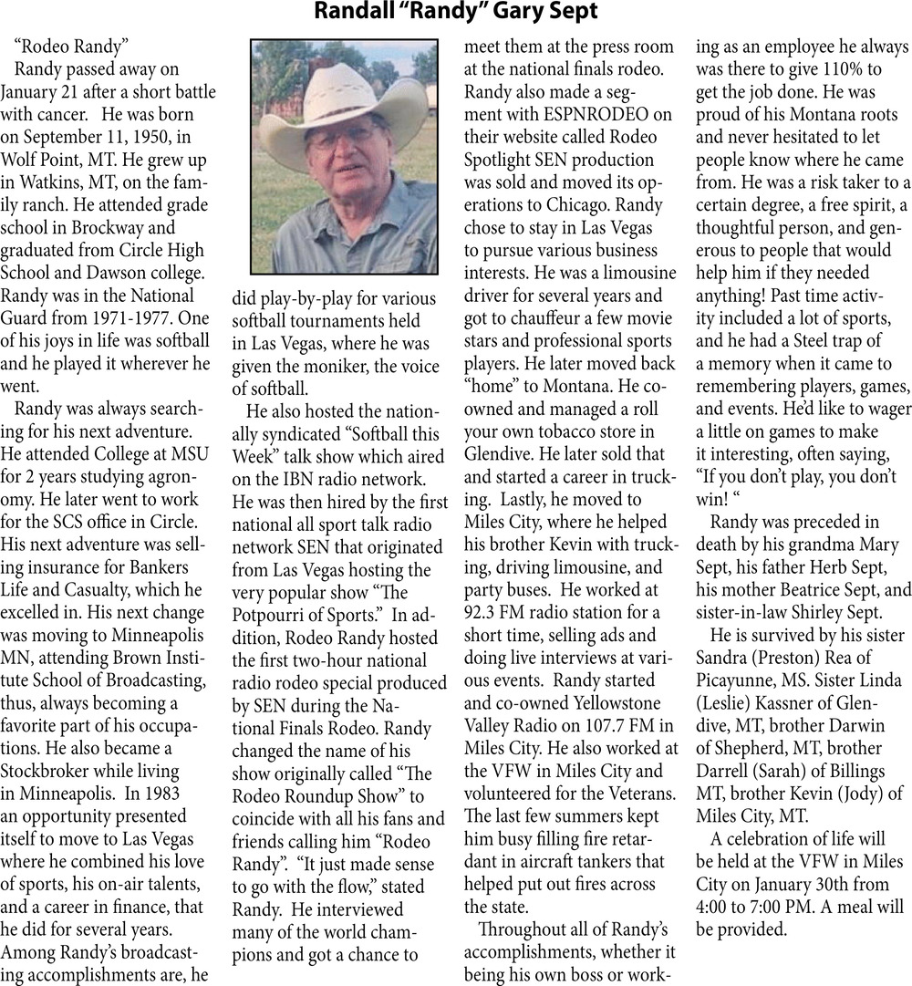 Jan 28, 2026. Obituaries Obituaries Ads from The Miles City Star