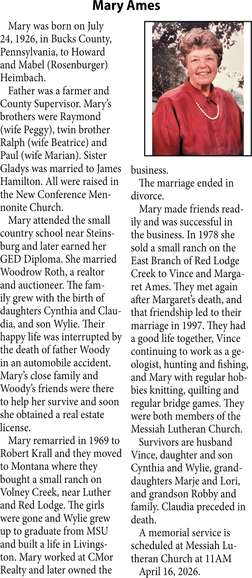 • Obituary in Glendive, MT