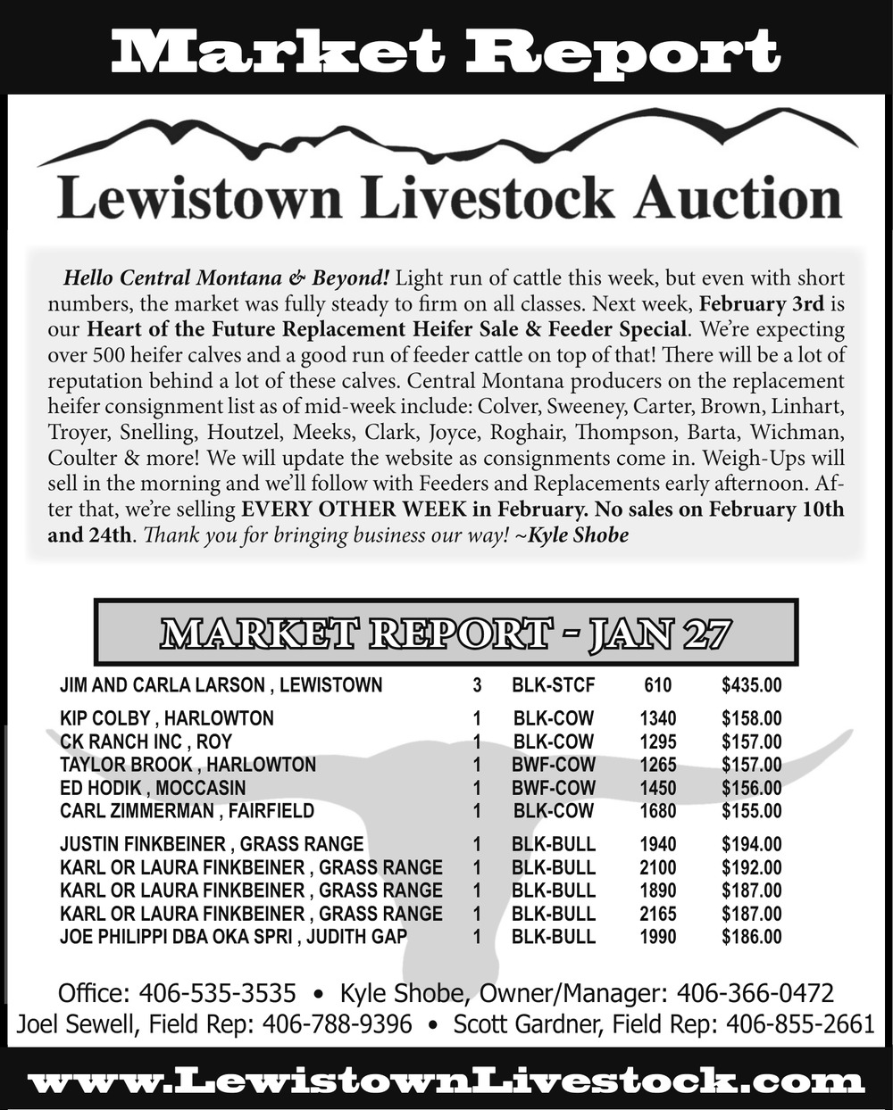 Jan 31, 2026. Lewistown Livestock Auction Auction Ads from Lewistown News-Argus