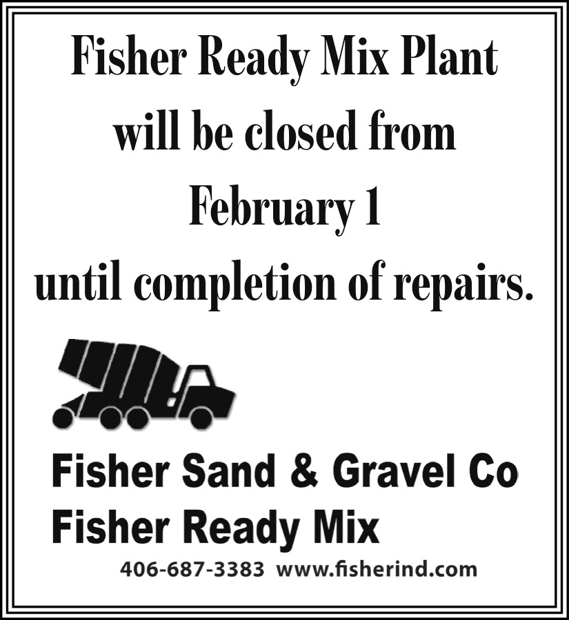 Jan 31, 2026. Fisher Sand & Gravel Co Construction Ads from The Glendive Ranger-Review