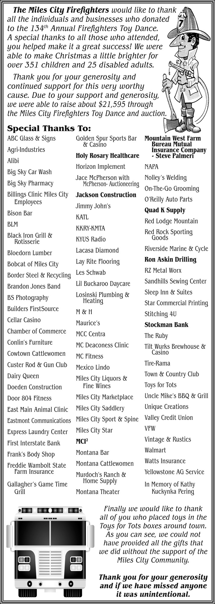 Feb 07, 2026. Miles City Firefighters Misc Ads from The Miles City Star