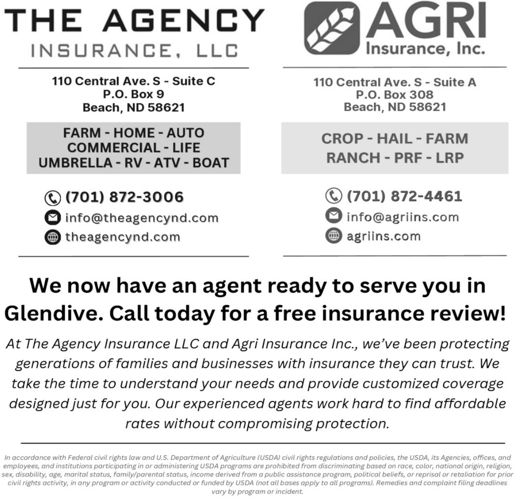 Feb 11, 2026. The Agency Insurance,LLC - AGRI Insurance, Inc. Finance & Insurance Ads from The Glendive Ranger-Review