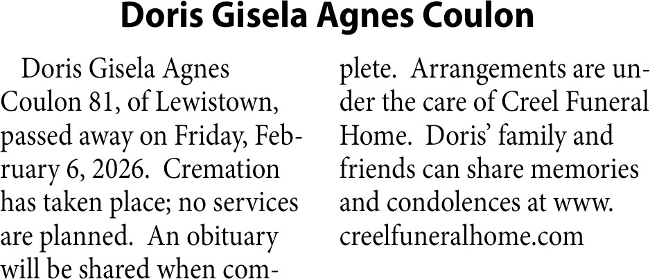 Feb 11, 2026. Obituaries Obituaries Ads from Lewistown News-Argus