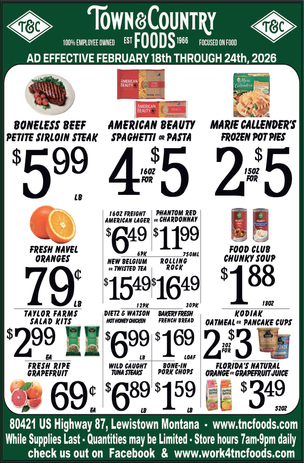 Feb 18, 2026. Town & Country Foods - Lewiston Grocery Store / Market Ads from Lewistown News-Argus
