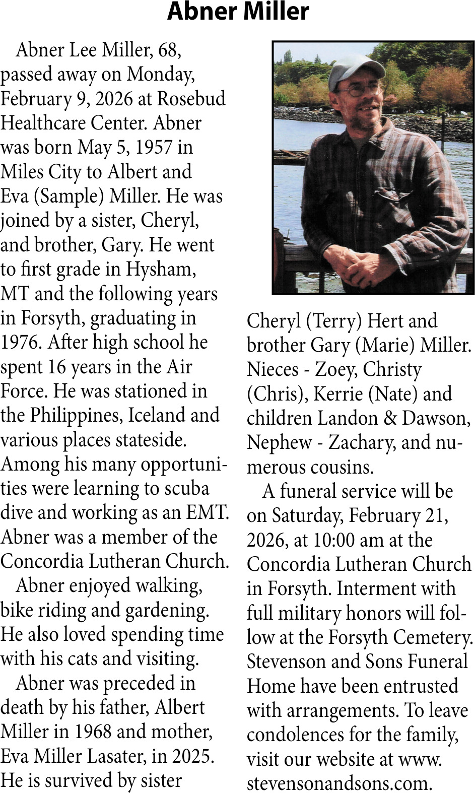 • Obituary in Glendive, MT