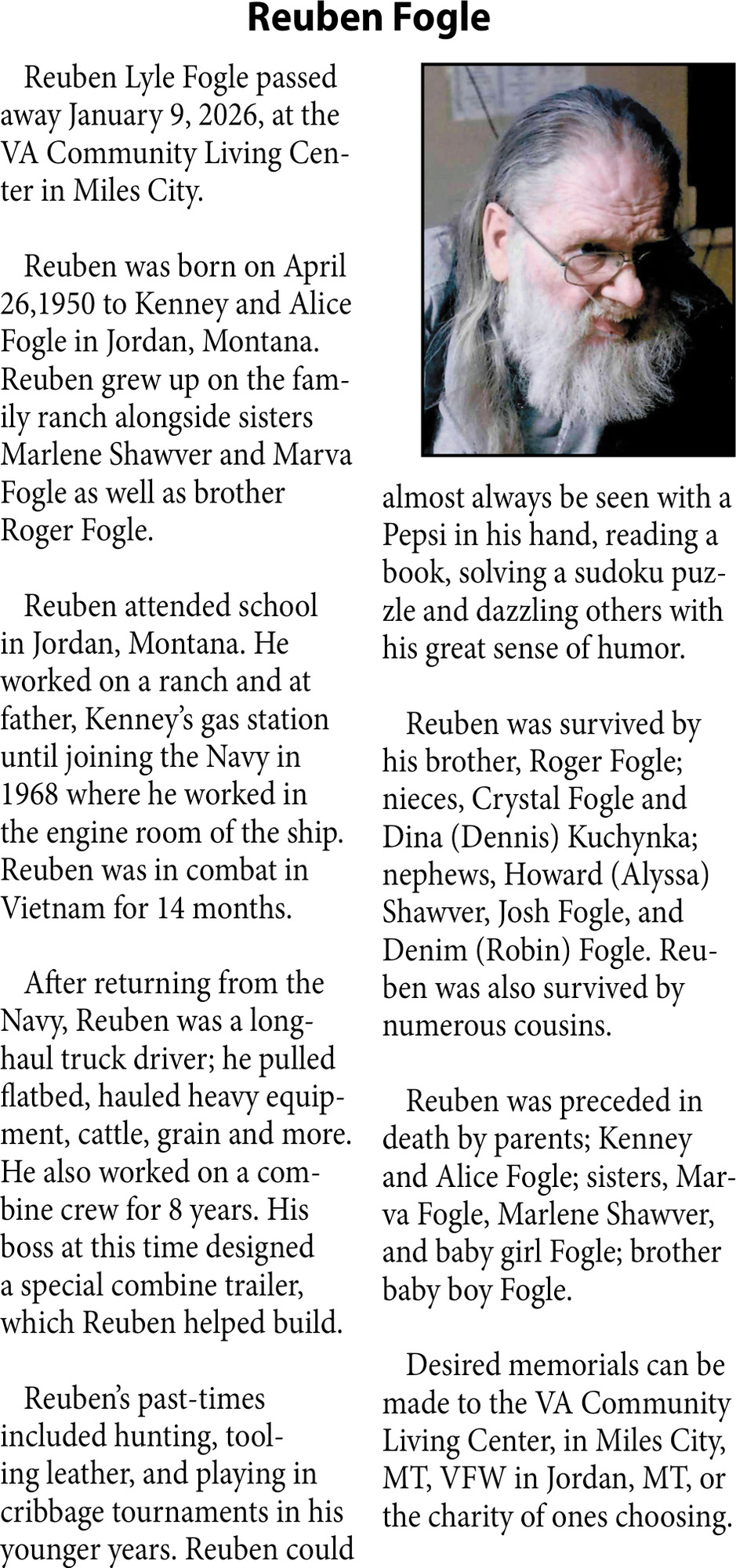 • Obituary in Glendive, MT