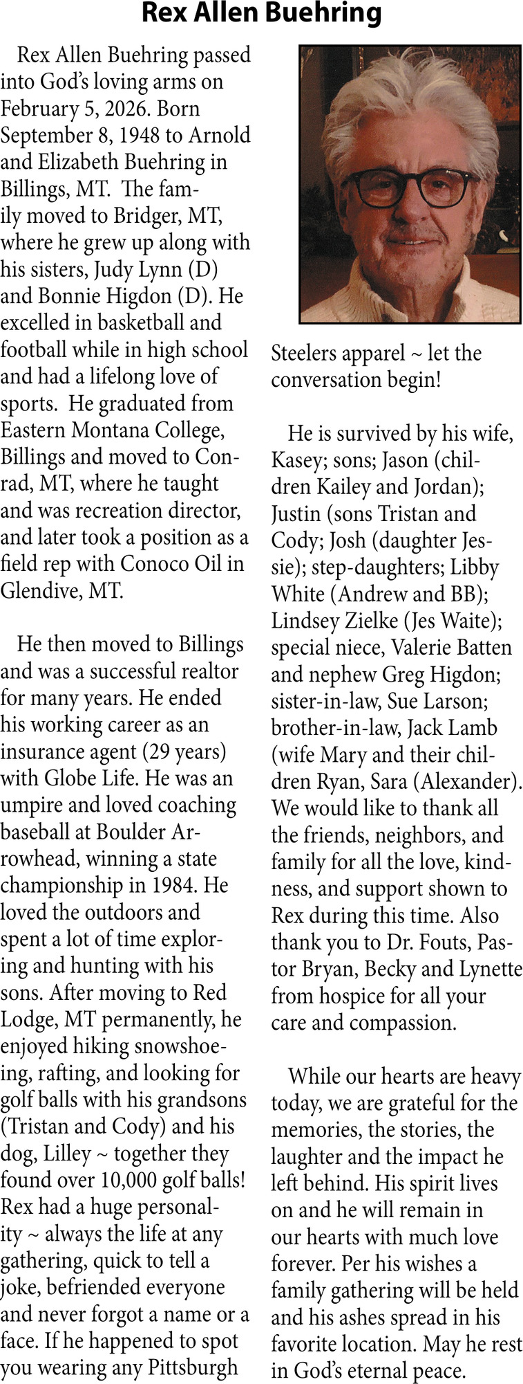 • Obituary in Glendive, MT