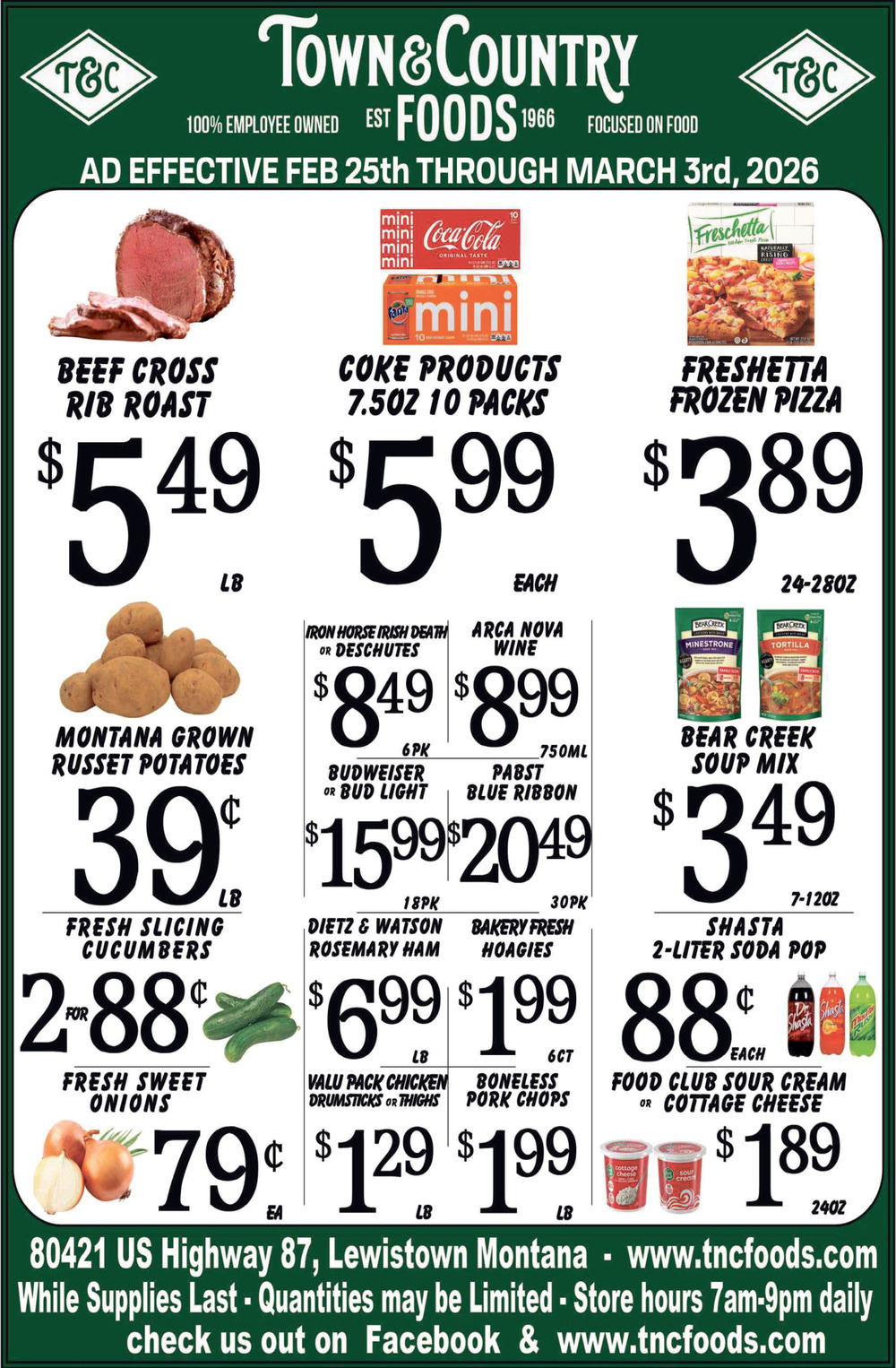 Feb 25, 2026. Town & Country Foods - Lewiston Grocery Store / Market Ads from Lewistown News-Argus