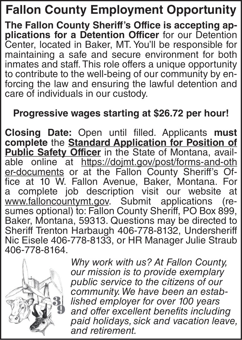 Feb 28, 2026. Fallon County Jobs Ads from The Miles City Star