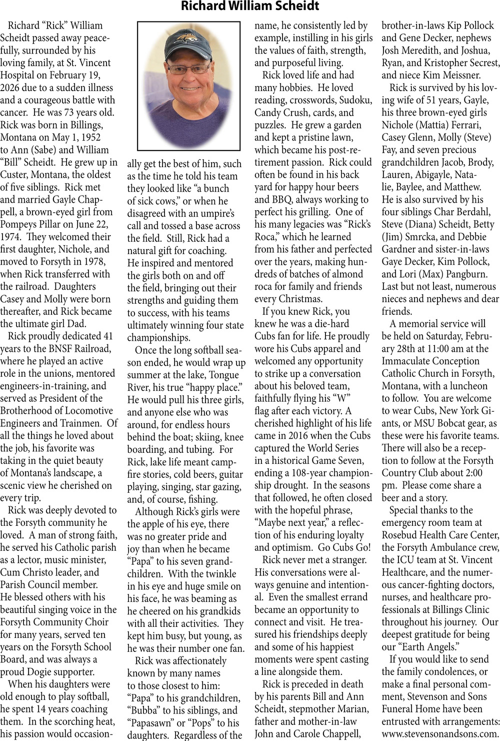 • Obituary in Glendive, MT