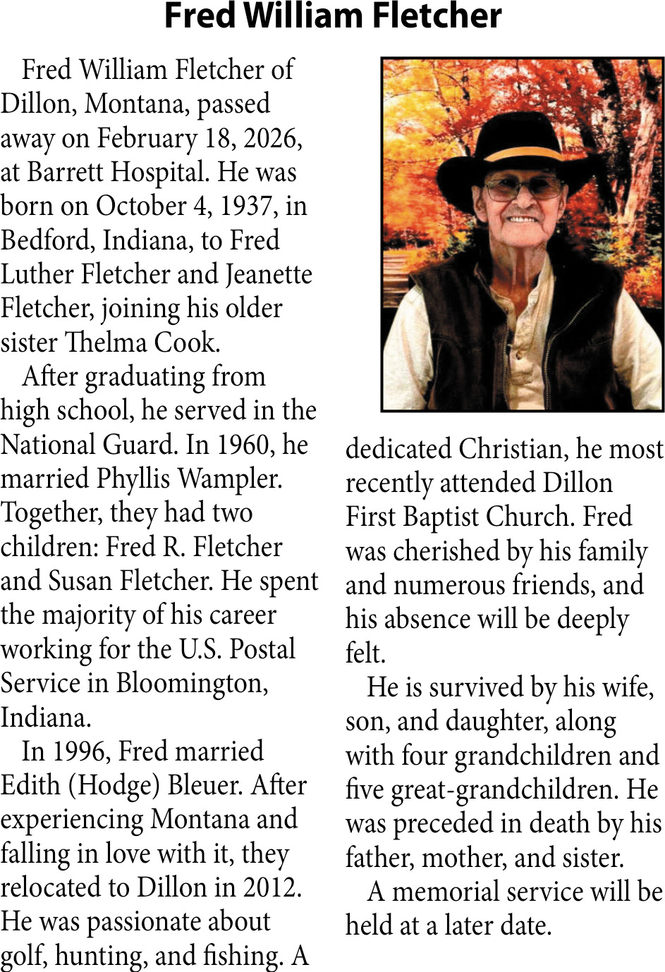 Mar 04, 2026. Obituaries Obituaries Ads from The Dillon Tribune