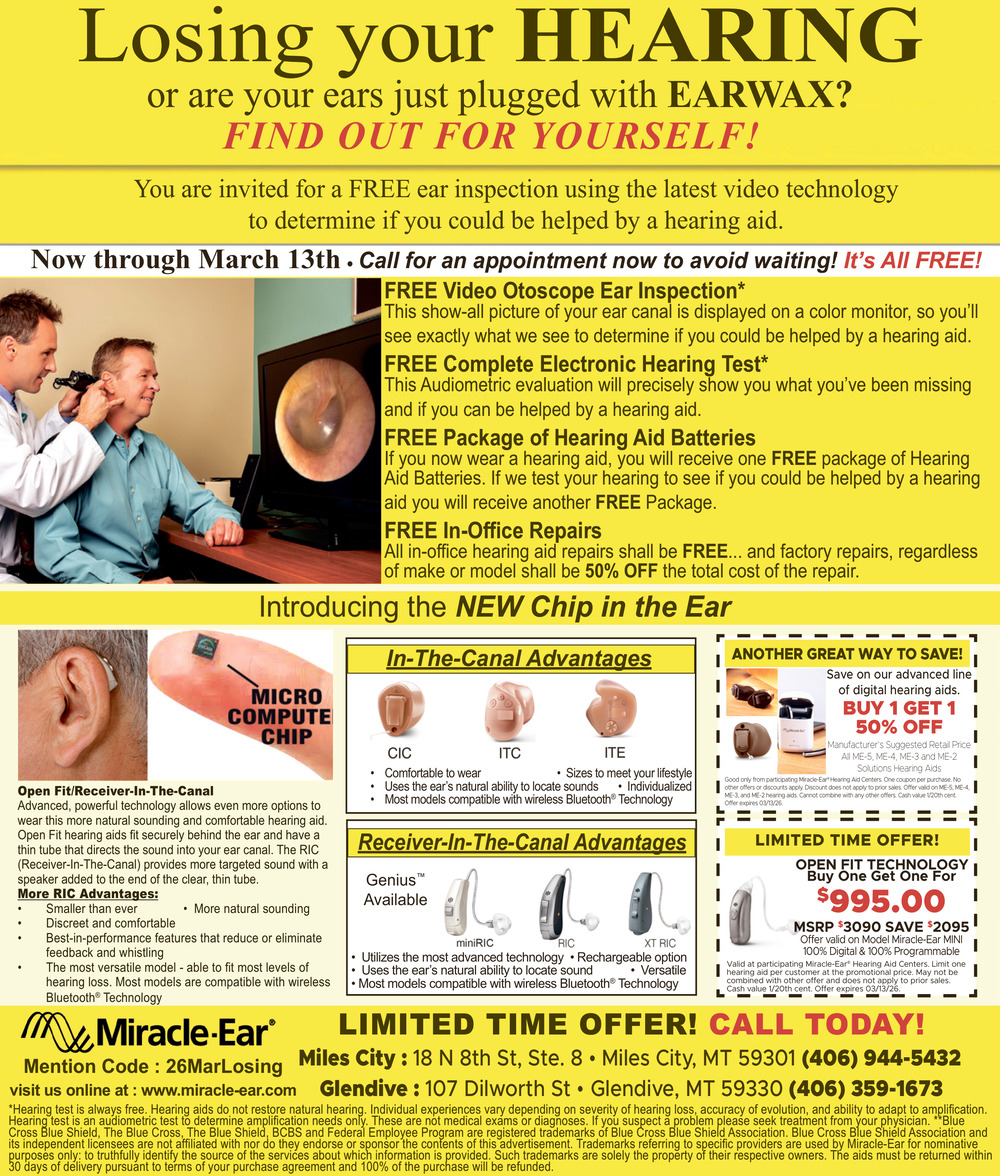 406-412-0689107 Dilworth StGlendive, MT 59330(Miracle-Ear Glendive)